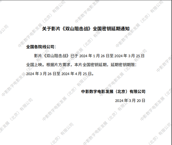 《双山阻击战》全国密钥延期的通知