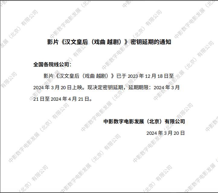 发行通知 » 《汉文皇后(戏曲 越剧)》密钥延期的通知