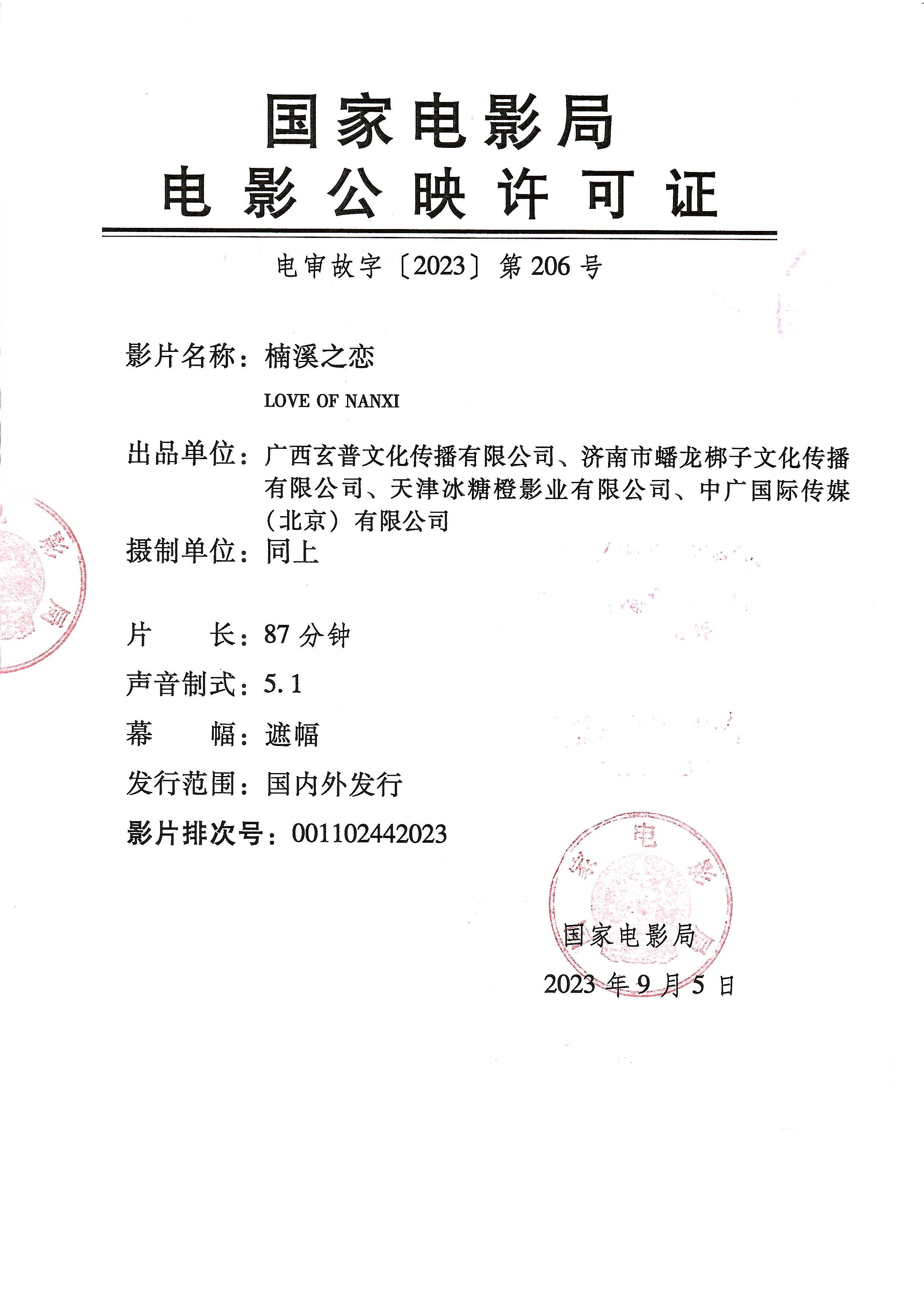 发行通知 » 《楠溪之恋》发行通知