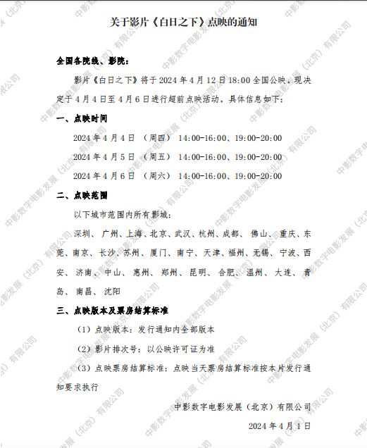 《白日之下》发行通知