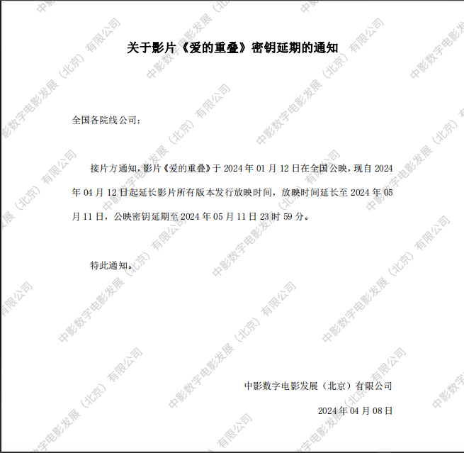《爱的重叠》密钥延期的通知