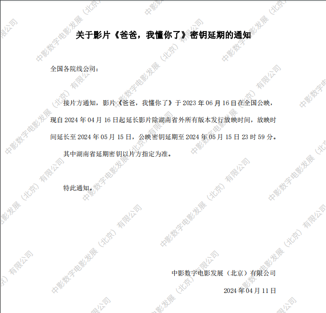 《爸爸,我懂你了》第十三次密钥延期的通知