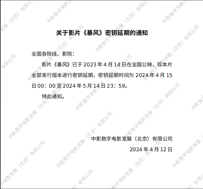 《暴风》密钥延期的通知