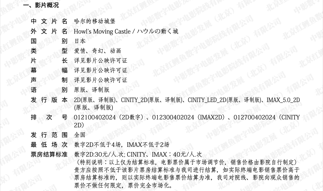 《哈尔的移动城堡》发行通知(第二次延期)》