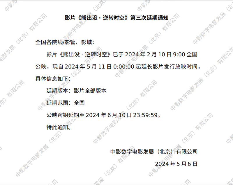 《熊出没·逆转时空》第二次密钥延期的通知