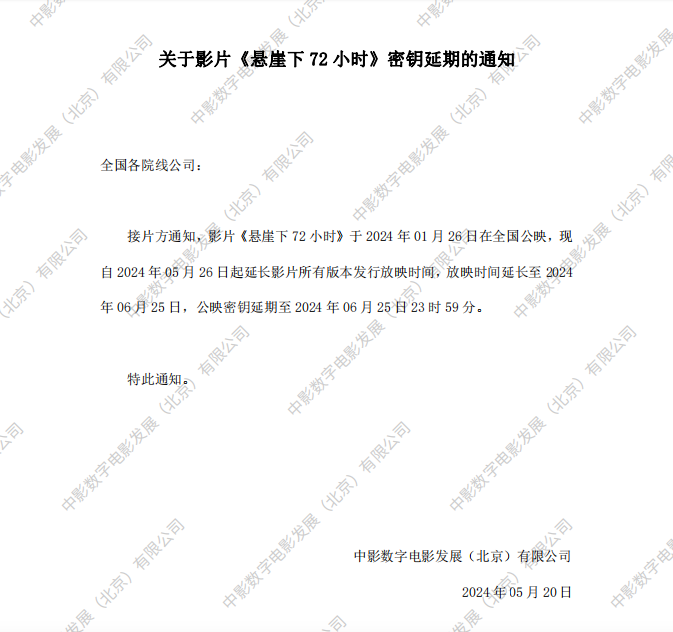 《悬崖下72小时》密钥延期的通知