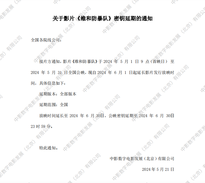 《维和防暴队》密钥延期的通知