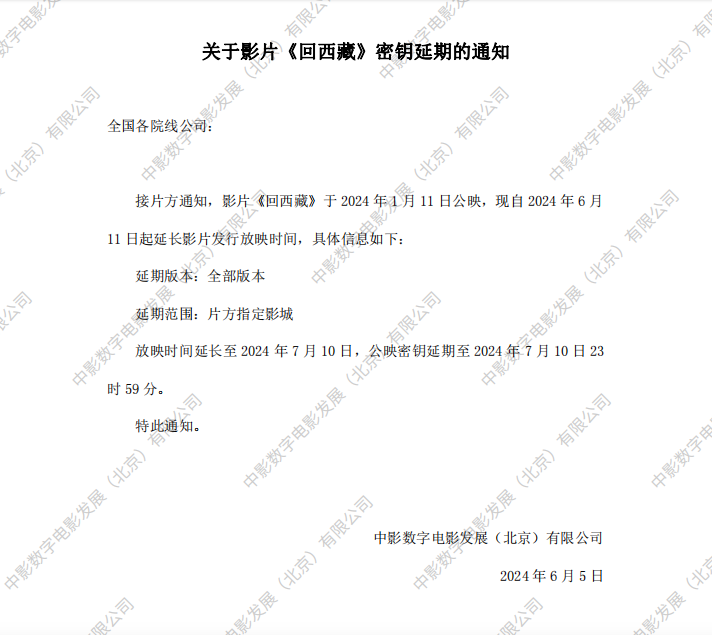《回西藏》密钥延期的通知