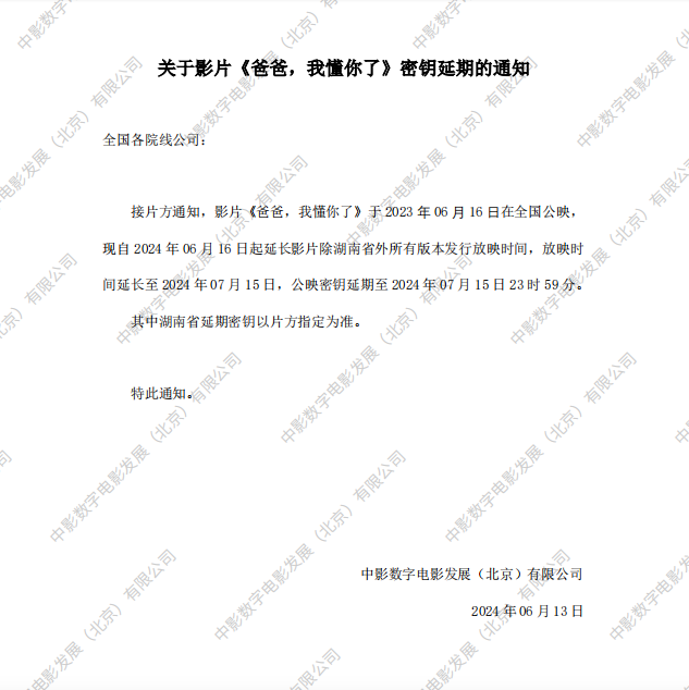 《爸爸,我懂你了》第十三次密钥延期的通知
