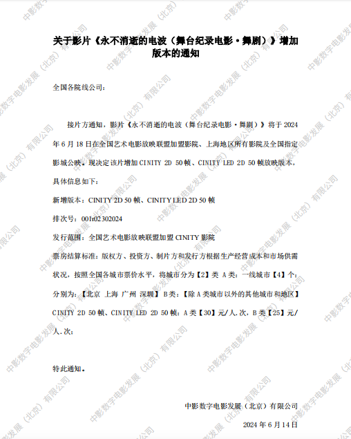 发行通知 » 《永不消逝的电波(舞台纪录电影·舞剧)》增加 版本的通知