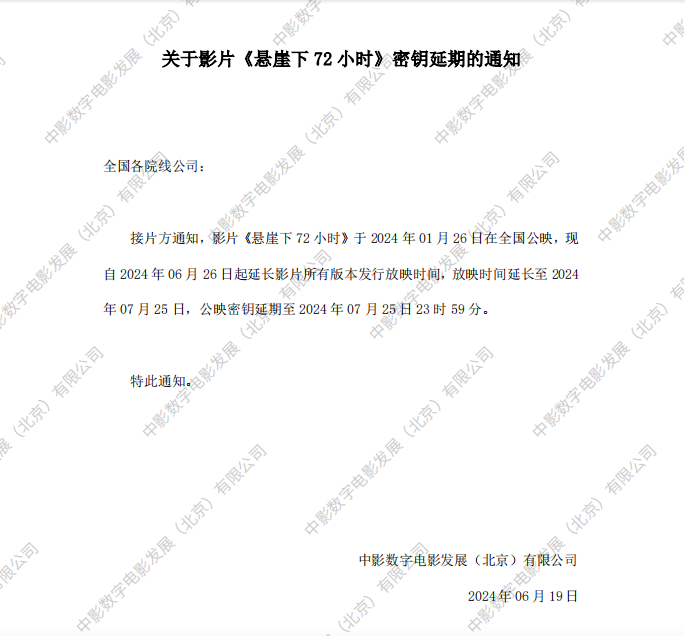 《悬崖下72小时》密钥延期的通知