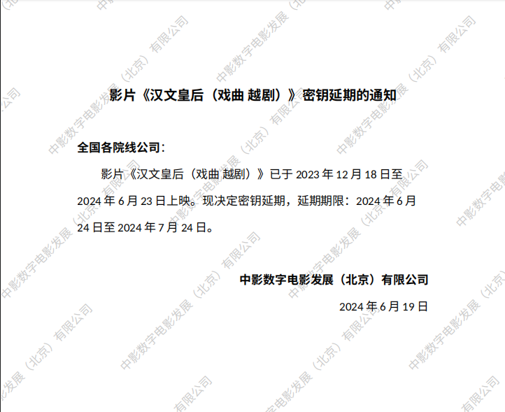 发行通知 » 《汉文皇后(戏曲 越剧)》密钥延期的通知