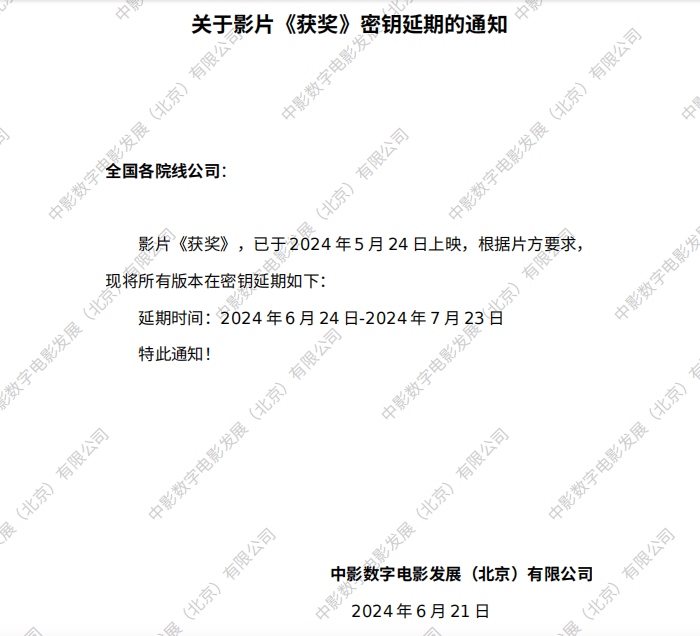 《获奖》第二次密钥延期的通知