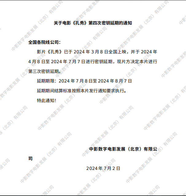 《孔秀》第三次密钥延期的通知