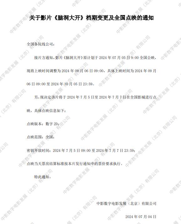 《脑洞大开》调整票房结算标准的通知