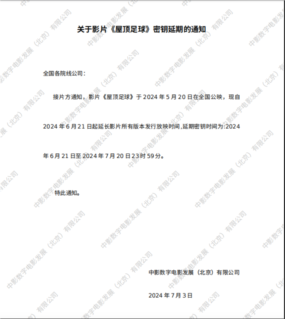 《屋顶足球》密钥延期的通知
