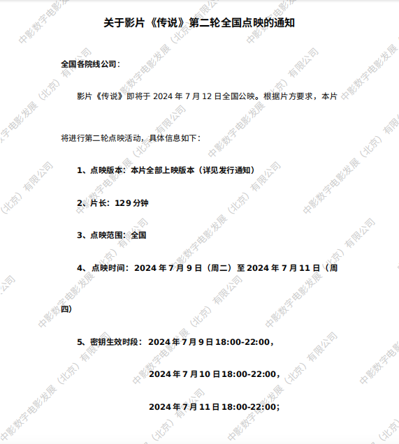 《传说》全国点映的通知