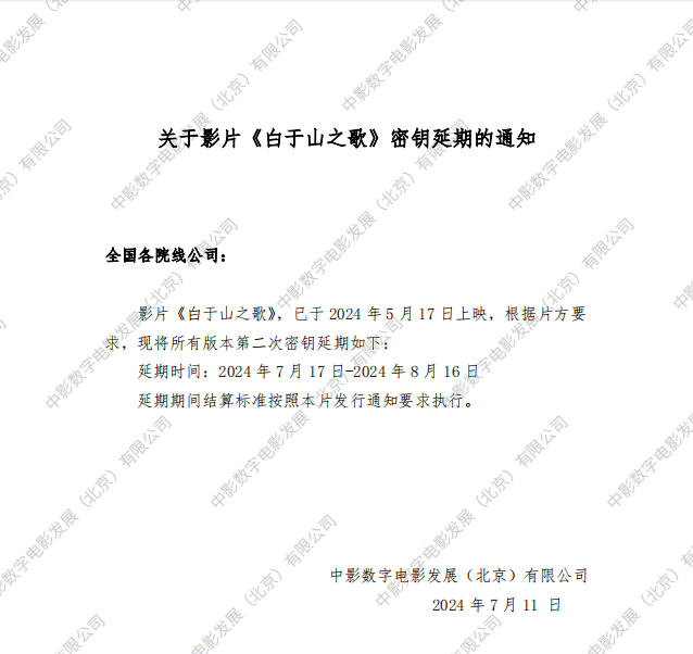 《十三根金条》第三次密钥延期的通知
