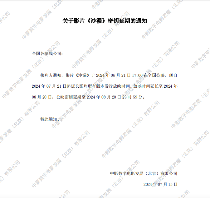 《沙漏》第三次密钥延期的通知