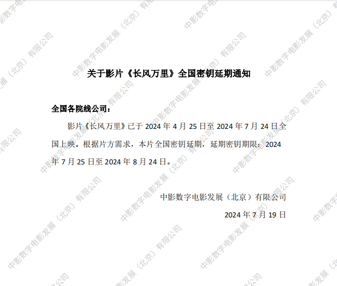 《长风万里》第二次全国密钥延期的通知