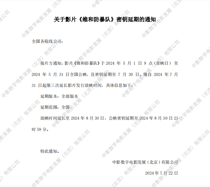 《维和防暴队》密钥延期的通知