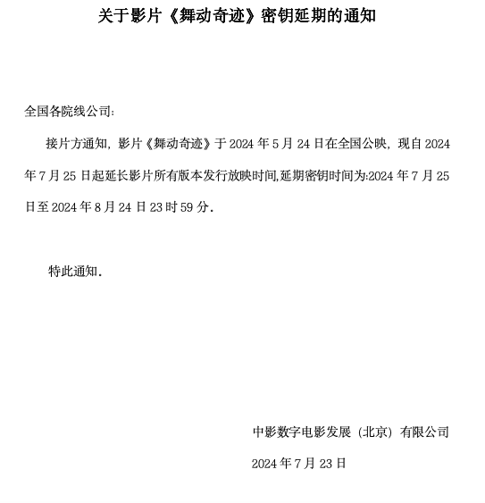 《舞动奇迹》密钥延期的通知