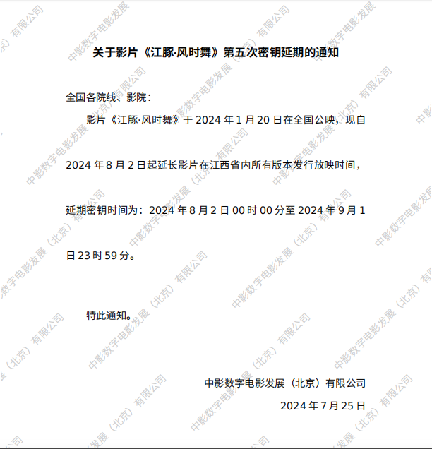 以此为准关于影片《江豚·风时舞》第四次密钥延期的通知