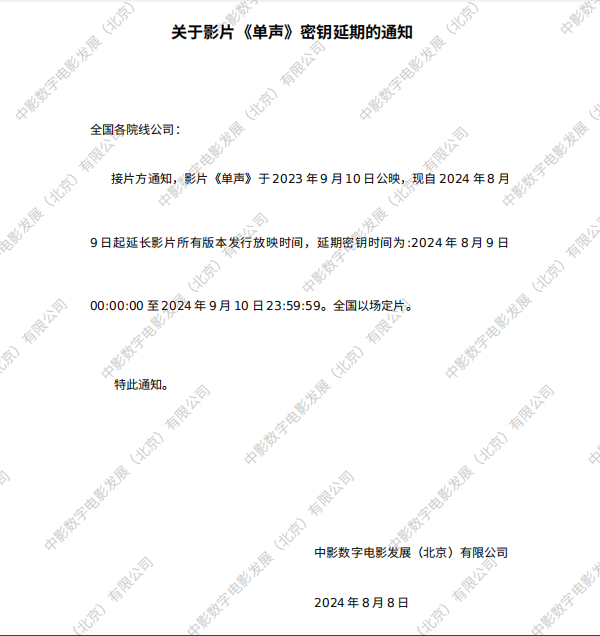 《单声》第二十二次密钥延期的通知
