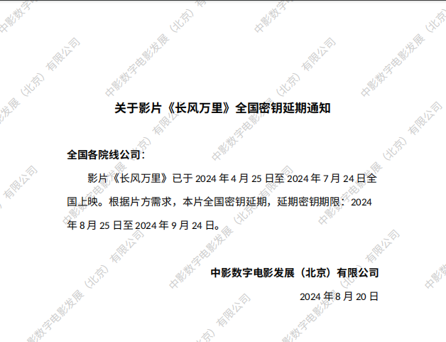 《长风万里》第二次全国密钥延期的通知