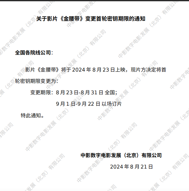 《金腰带》发行通知8.23版