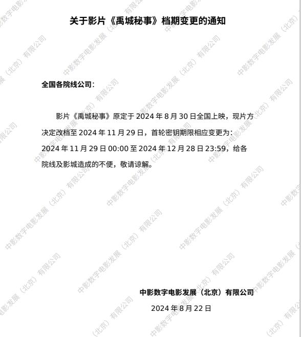《禹城秘事》点映的通知