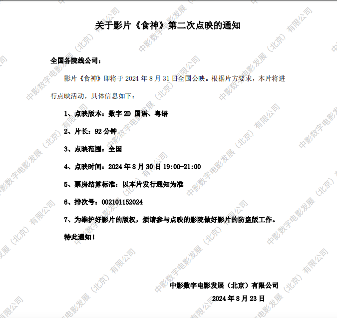 《食神》发行通知