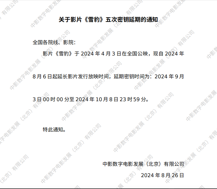 《雪豹》第十四次密钥延期的通知