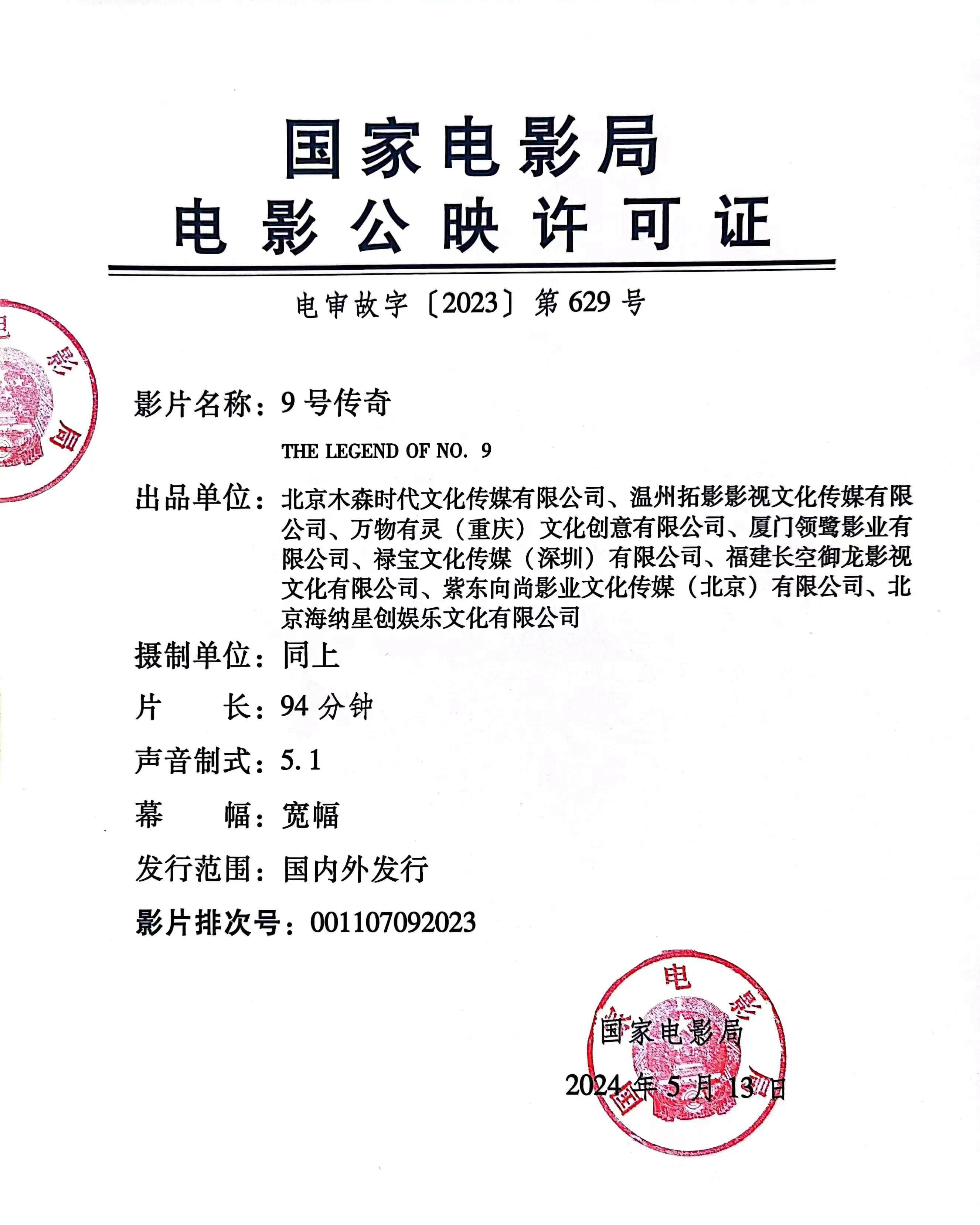 联合出品:厦门领鹭影业有限公司、禄宝文化传媒(深圳)有限公司、福建长空御龙影视文化有限公司、紫东向尚影业文化传媒(北京)有限公司、北京海纳星创娱乐文化有限公司