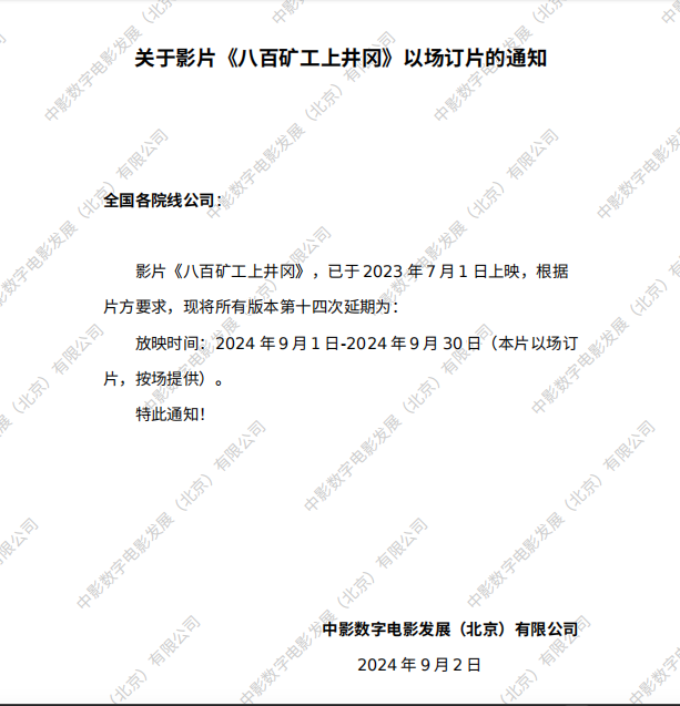发行通知 » 《八百旷工上井冈》第十四次以场订片的通知