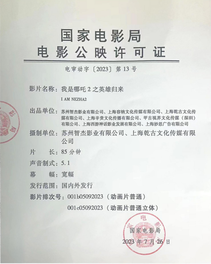 出 品:苏州智杰影业有限公司、上海容纳文化传媒有限公司、上海乾古文化传媒有限公司、上海辛贵文化传播有限公司、甲古视界文化传媒(深圳)有限公司、上海西游神话影业发展有限公司、上海妙思广告有限公司