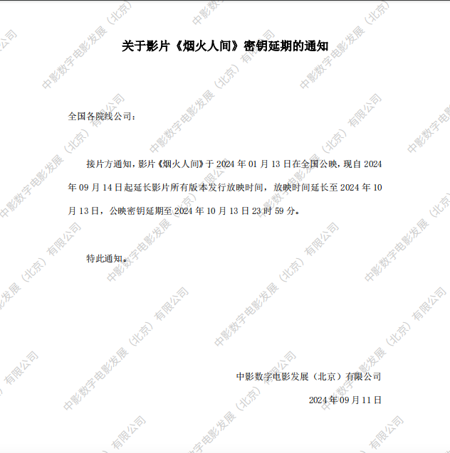 《烟火人间》第二次密钥延期的通知