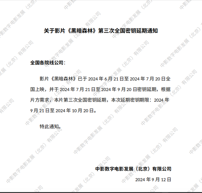 《黑暗森林》第二次全国密钥延期的通知