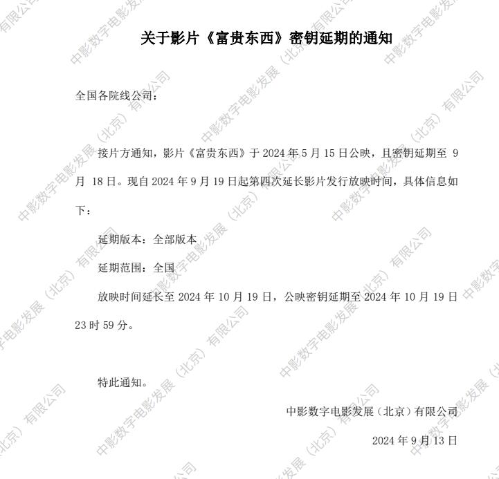《富贵东西》第三次密钥延期的通知