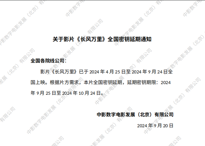 《长风万里》第二次全国密钥延期的通知