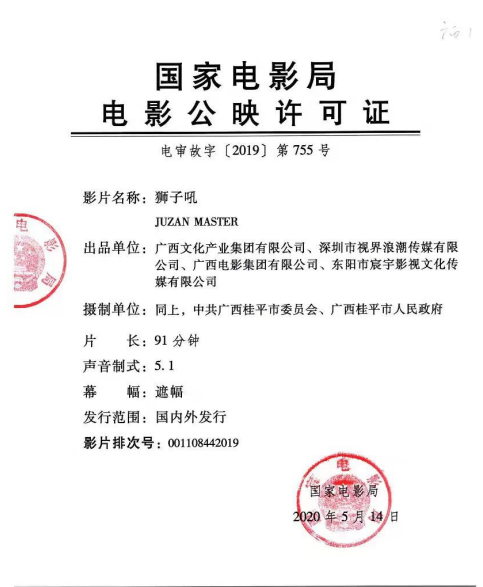 出 品:广西文化产业集团有限公司、深圳市视界浪潮传媒有限公司、广西电影集团有限公司、东阳市宸字影视文化传媒有限公司