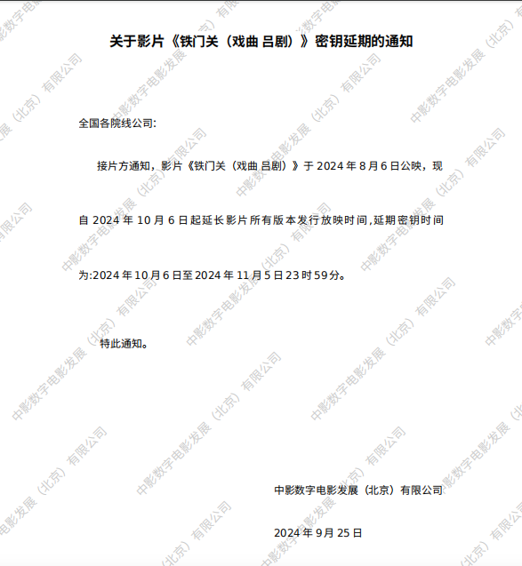 发行通知 » 《铁门关(戏曲 吕剧)》第二次密钥延期的通知