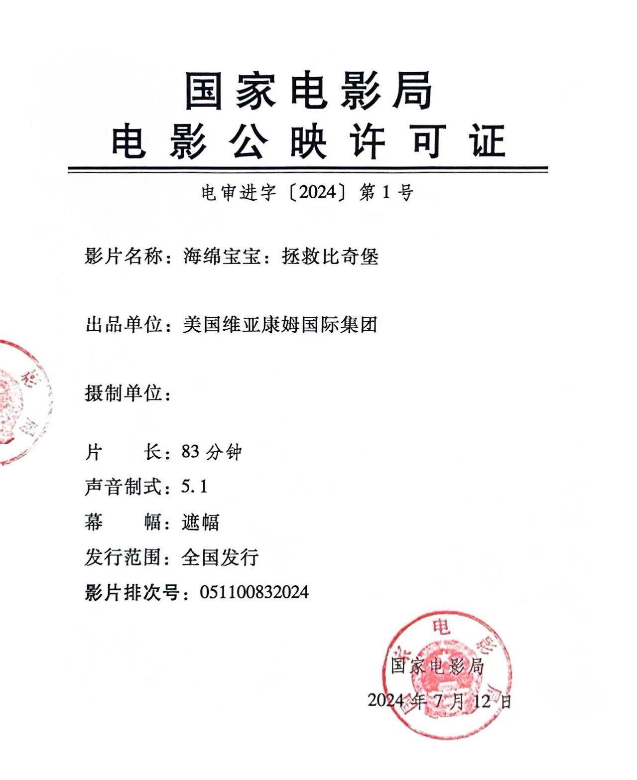 《海绵宝宝:拯救比奇堡》发行通知(延期)