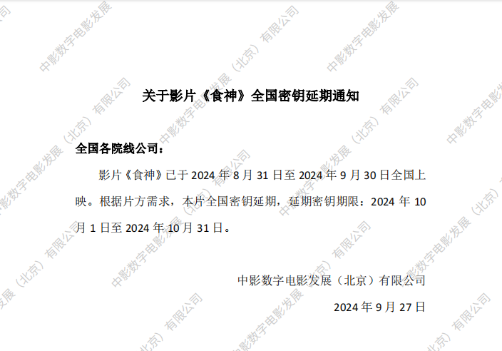 《食神》数字版影片发行通知