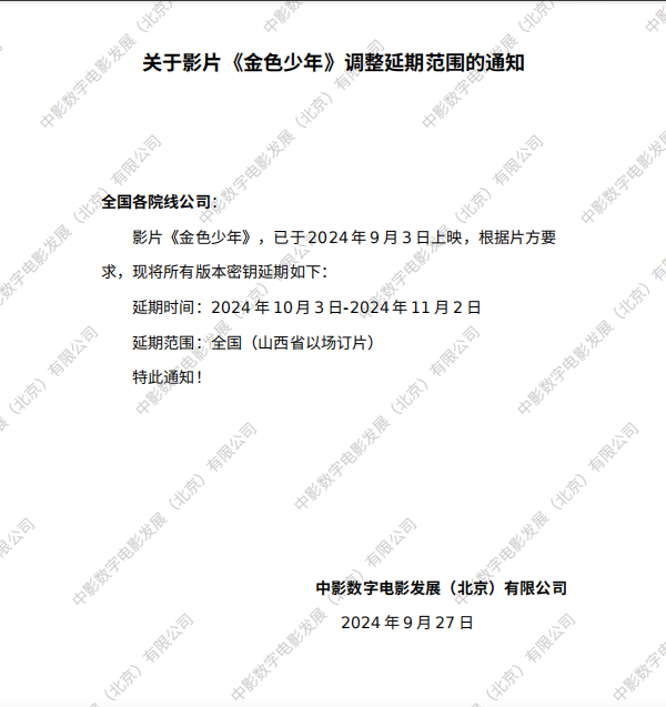 《金色少年》第四次调整延期范围的通知