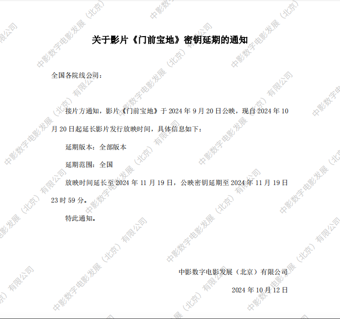 《门前宝地》第二次密钥延期的通知