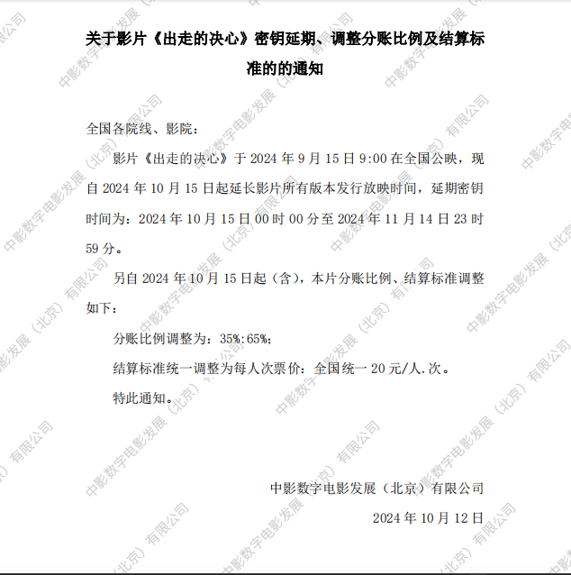 《出走的决心》第二轮点映的通知