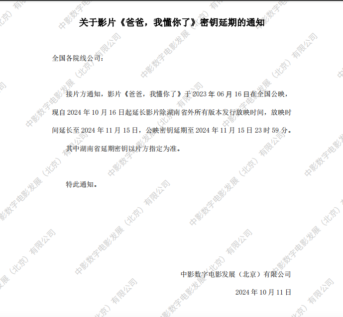 《爸爸,我懂你了》第十三次密钥延期的通知