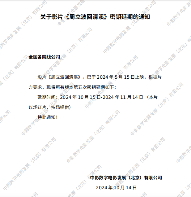 《周立波回清溪》第二次密钥延期的通知