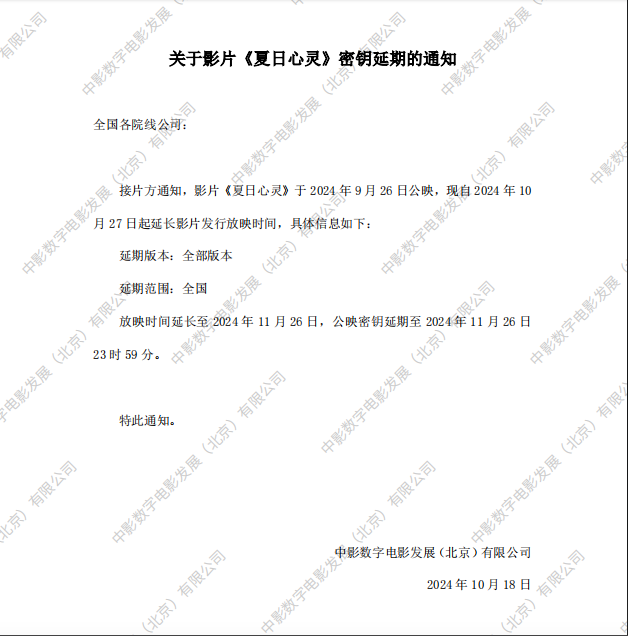 《蜜蜂的针》增加放映版本的通知